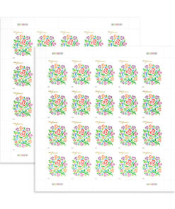 As with the??Yes I Do???? Heart of Roses stamp. the ???Where Dreams Blossom???? Wedding Bouquet stamp was designed by Ethel Kessler using an illustration by Michael Osborne.? This stylized bouquet stamp was issued for use on the save-the-date notices. response cards. and thank-you notes.