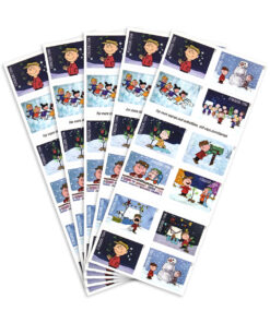 Each of the Charlie Brown Christmas stamps features a still taken from?A Charlie Brown Christmas.??Art director Antonio Alcal?? designed the stamps.