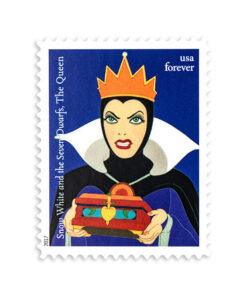 About the stamp design: Features the evil Queen from Snow White. Disney Creative Director David Pacheco and the Walt Disney Studios Ink & Paint Department created new art for the stamp.