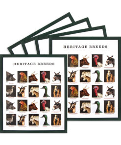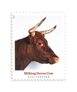 In 2021. the United States Postal Service issued a new set of 10 Forever stamps honoring historic heritage breeds. Each design pictures a different animal with its common name listed below. The breeds shown on the stamps are: the Mulefoot hog. Wyandotte chicken. Milking Devon cow. Narragansett turkey. American Mammoth Jackstock donkey. Cotton Patch goose. San Clemente Island goat. American Cream draft horse. Cayuga duck. and Barbados Blackbelly sheep. All of these heritage breeds were established in the Americas.