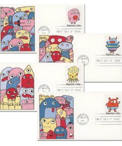 Gravel’s passion is evident in her desire to entertain children with funny and endearing characters. encouraging them to enjoy and explore the world while learning valuable lessons. Given the USPS’s goal of introducing stamps to a younger audience. Elise Gravel was a fitting collaborator for the Message Monsters designs.