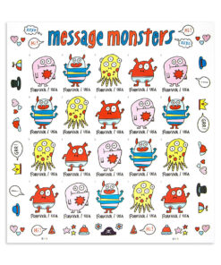 In 2021. the USPS introduced a set of four Message Monsters stamps with the aim of sparking interest in young people. The stamps were a collaborative effort between USPS art director Antonio Alcal?? and renowned children’s author and illustrator Elise Gravel.