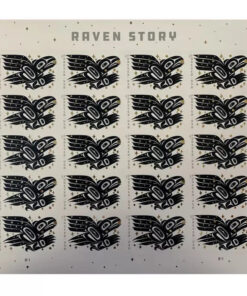 The stamp is inspired by the traditional story of the raven setting the sun. moon and stars free. It depicts one of many stories about the raven. a figure of great significance to the Indigenous people of the northern Northwest Coast. part of the area that ranges from Southeast Alaska through coastal British Columbia and south into Washington state.