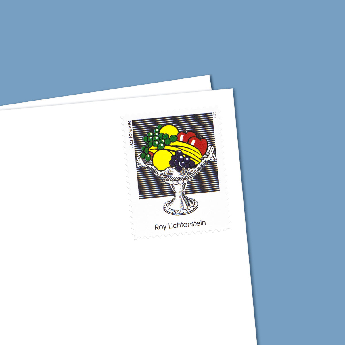 Roy Lichtenstein is honored with a stamp featuring his renowned work ??Still Life with Crystal Bowl?? (1972). The issuance took place on April 24. 2023. at the Whitney Museum of American Art in NYC. The set comprises five stamps highlighting different pieces by Lichtenstein. His experimental landscapes. influenced by comic art. showcase his distinctive Pop Art style. These landscapes. whether representational or abstract. demonstrate Lichtenstein’s innovative use of materials. In his later years. he revisited landscapes. concentrating on classical Chinese landscapes using halftone dots.
