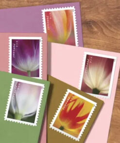 These new stamps from the Postal Service feature closeup views of 10 different tulips in a rainbow of colors. Each flower fills almost the entire frame of the stamp. with just the top of the stem showing. Art director Greg Breeding designed the stamps with existing photographs by Denise Ippolito.