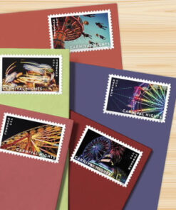 Experience the thrills of?Carnival Nights?with this colorful pane of stamps in 2024.