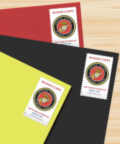 This stamp celebrates the 250th anniversary of the U.S. Marine Corps and honors its service to the nation.